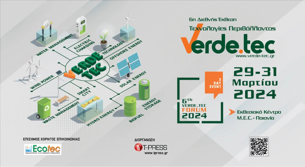 Η 6η διεθνής VERDE.TEC / Τεχνολογίες Περιβάλλοντος – η πλέον εξειδικευμένη έκθεση για το Περιβάλλον, την Κυκλική Οικονομία και τις Έξυπνες Πόλεις στην Ελλάδα, έρχεται από 29 31 Μαρτίου 2024 στο εκθεσιακό κέντρο MEC στην Παιανία, υπογραμμίζοντας την ανάγκη για συνεργασία και δράση για την προστασία του περιβάλλοντος και την προώθηση της βιώσιμης ανάπτυξης.