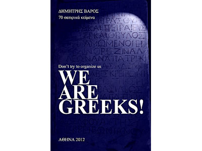To νέο βιβλίο του Δημήτρη Βάρου “We are Greeks!” (Σελίδες 236, ISBN 978-618-5015-24-4, εκδόσεις Bookstars) που μόλις κυκλοφόρησε μπορεί να σας δώσει απαντήσεις σε αυτά τα ερωτήματα αλλά και επιχειρήματα απέναντι στις κατηγορίες των ξένων. Μπορεί να σας ανεβάσει το ηθικό αλλά μπορεί να σας κάνει και έξαλλο. Το σίγουρο είναι πως θα σας κάνει να γελάσετε. Και αφού γελάσετε, να συνειδητοποιήσετε πως αυτά που σας έκαναν να γελάσετε μόνο για γέλια δεν είναι.