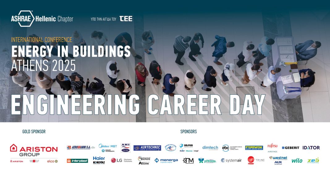 Στο πλαίσιο του διεθνούς συνεδρίου “Energy in Buildings Athens 2025”, το Ελληνικό Παράρτημα της ASHRAE διοργανώνει το “Engineering Career Day”, μια ειδική εκδήλωση αφιερωμένη στη σύνδεση των νέων μηχανικών με την αγορά εργασίας και τις κορυφαίες εταιρείες του κλάδου του HVAC και της εξοικονόμησης ενέργειας. Η συγκεκριμένη εκδήλωση θα πραγματοποιηθεί το Σάββατο 15 Νοεμβρίου 2025, στο Divani Caravel Hotel, από τις 14:30 έως τις 18:00, και θα περιλαμβάνει τρεις διαδοχικές ενότητες με στόχο την ανταλλαγή γνώσης, εμπειριών και ευκαιριών συνεργασίας.
