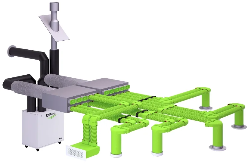 Συμπληρωματικά με τα φίλτρα G4 η Calda Energy AEBE διαθέτει φίλτρο ιονισμού Plasmacluster, που μειώνει τα επίπεδα των μολυσματικών ουσιών στο χώρο. Η μονάδα RePuro είναι μέρος ενός συστήματος το οποίο αποτελείται από παρελκόμενο εξοπλισμό (όπως κουτιά και κανάλια διανομής, τερματικά στόμια κτλ.) και παρουσιάζει τα εξής πλεονεκτήματα: