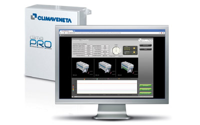 Το σύστημα ClimaPRO της Climaveneta αντιπροσωπεύει την τελευταία λέξη της τεχνολογίας στον τομέα του ελέγχου και της διαχείρισης υδραυλικών εγκαταστάσεων ψυκτών και αντλιών θερμότητας. Το ClimaPRO εγγυάται την ενεργή βελτιστοποίηση της λειτουργίας ολόκληρης της εγκατάστασης ελέγχοντας και ρυθμίζοντας κάθε εξάρτημα που σχετίζεται άμεσα με την παραγωγή και διανομή της θερμικής ενέργειας (ψύξη / θέρμανση), δηλαδή τους ψύκτες και τις αντλίες θερμότητας, τις αντλίες κυκλοφορίας νερού καθώς και τις συσκευές απορρόφησης ή απόρριψης θερμότητας από το εξωτερικό περιβάλλον, όπως τους πύργους ψύξης για παράδειγμα. Ειδικότερα, το σύστημα ClimaPRO καταγράφει σε πραγματικό χρόνο λειτουργίας όλες τις μεταβλητές της εγκατάστασης για κάθε επιμέρους εξάρτημα/συσκευή και για κάθε επιμέρους κλάδο του συστήματος, μέσω γραμμών σειριακής επικοινωνίας και μέσω αναλογικών σημάτων. Τα δεδομένα που λαμβάνονται συγκρίνονται στη συνέχεια με τα στοιχεία σχεδιασμού κάθε μονάδας σε διαφορετικές συνθήκες λειτουργίας, επιτρέποντας έτσι την εφαρμογή στρατηγικών ελέγχου βασισμένων σε δυναμικούς αλγορίθμους που λαμβάνουν υπόψη τις πραγματικές συνθήκες λειτουργίας. Με βάση τις τιμές αυτές, ένα προηγμένο σύστημα διάγνωσης επιτρέπει την αξιολόγηση της απόδοσης κάθε επιμέρους μονάδας, μεταφράζοντας τα δεδομένα σε ευανάγνωστες πληροφορίες με σκοπό την απλοποίηση και βελτιστοποίηση των εργασιών συντήρησης. Το πρόγραμμα “Chart Builder” του ClimaPRO επιτρέπει τη γραφική απεικόνιση των μεταβολών των κυρίως παραμέτρων λειτουργίας. Το πρόγραμμα “Reporting” του ClimaPRO επιτρέπει την αποστολή αναφορών σε επιλεγμένους χρήστες, περιέχοντας δεδομένα και την κατάσταση του συστήματος για τις κυρίως μονάδες /εξαρτήματα, καθώς και τον υπολογισμό των ενεργειακών δεικτών για κάθε μονάδα αλλά και για ολόκληρη την εγκατάσταση. Η προσβασιμότητα στο σύστημα ClimaPRO εξασφαλίζεται από έναν ολοκληρωμένο web server, ο οποίος το καθιστά ορατό από κάθε Η/Υ εξοπλισμένο με ένα πρόγραμμα πλοήγησης στο διαδίκτυο, είτε τοπικά είτε από απόσταση.
