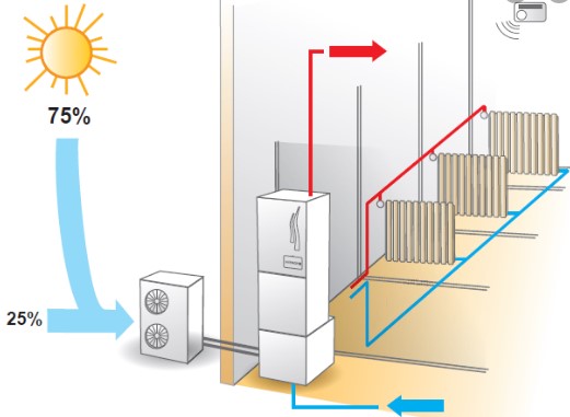 • Την αντικατάσταση του υφιστάμενου ψύκτη ύδατος, με αντλία θερμότητας υψηλής απόδοσης χαμηλής στάθμης θορύβου σταθερών στροφών με σύγχρονο οικολογικού τύπου freon ισχύος 154,0 KW για ψύξη και 181.0 KW θέρμανση με EER 2.76 και COP 3.75.