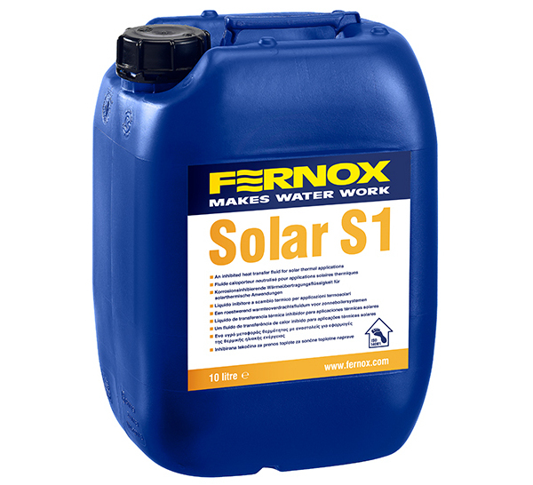 Το Fernox Solar S1 είναι αντιδιαβρωτικό και αντιψυκτικό με βάση τη μονοπροπυλενογλυκόλη, το οποίο έχει σχεδιαστεί για την προστασία των συστημάτων ηλιοθερμίας τόσο στην υγρή όσο και στην αέρια φάση. Περιέχει θερμικούς σταθεροποιητές και ρυθμιστικά που προστατεύουν τη γλυκόλη από την αποδόμηση, καθώς και πτητικούς αναστολείς οι οποίοι λειτουργούν στην αέρια φάση κατά τη διάρκεια της στασιμότητας. Μη αφρίζον, το προϊόν παραμένει αμετάβλητο σε θερμοκρασίες λειτουργίας μέχρι 180οC και σε θερμοκρασίες αιχμής μέχρι 360οC, με pH σταθερό σε όλο το εύρος θερμοκρασίας.