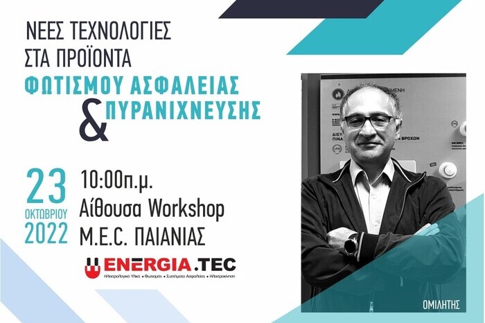 Στα πλαίσια της διεθνούς έκθεσης Energia.Tec η Olympia Electronics Α.Ε. διοργανώνει την Κυριακή 23 Οκτωβρίου και ώρα 10:00, σεμινάριο στην αίθουσα Workshop του M.E.C Παιανίας με θέμα: «Νέες τεχνολογίες στα προϊόντα Φωτισμού ασφαλείας και Πυρανίχνευσης»