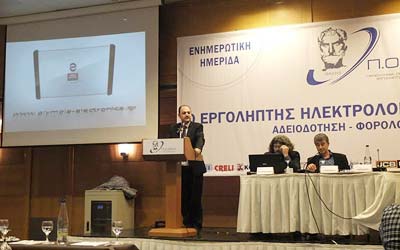 1. Ο κ. Δημήτρης Λακασάς – Διευθυντής της OLYMPIA ELECTRONICS A.E. στο πάνελ της ημερίδας.