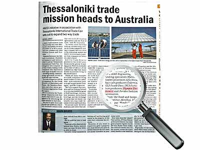Η olympia electronics A.E. συμμετείχε στην Επιχειρηματική Αποστολή, που πραγματοποίησε η Διεθνής Έκθεση Θεσσαλονίκης (ΔΕΘ Α.Ε.) από τις 20 έως τις 27 Νοεμβρίου 2012. Την εταιρεία εκπροσώπησε ο Διευθυντής Εξαγωγών, κ. Παντελής Αντάρ, ο οποίος είχε προκαθορισμένες σημαντικές συναντήσεις, τόσο στην Μελβούρνη όσο και στο Σύδνεϋ. Χαρακτηριστικό της επιχειρηματικής αποστολής ήταν ότι οι ημερομηνίες διεξαγωγής της, συνέπεσαν με τον εορτασμό της ελληνικής ομογένειας στην Αυστραλία για τα 100 χρόνια από την απελευθέρωση της Θεσσαλονίκης.