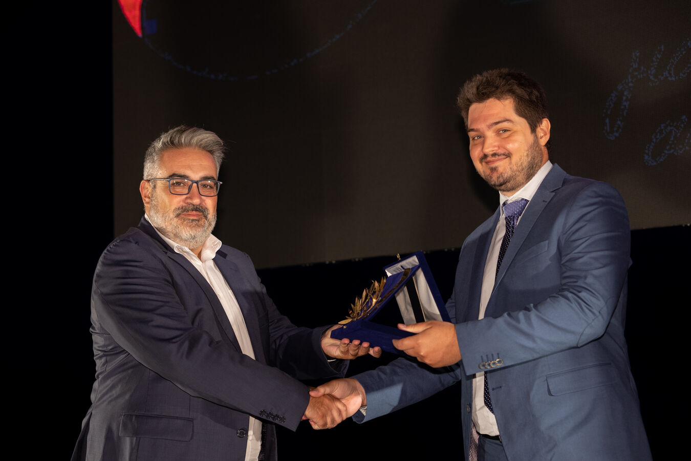To βραβείο παρέλαβε ο Γενικός Διευθυντής της OLYMPIA ELECTRONICS A.E. κ. Πολύκαρπος Παπαδόπουλος (αριστερά στη φωτό) από τον Πρόεδρο του Επιμελητηρίου κ. Ηλία Χατζηχριστοδούλου (δεξιά). Ο Πρόεδρος του Επιμελητηρίου Πιερίας εγκαινίασε έναν νέο επιμελητηριακό θεσμό, τα «Βραβεία Επιχειρηματικότητας», βραβεύοντας συνολικά 28 εμβληματικές επιχειρήσεις του νομού Πιερίας, οι οποίες καινοτομούν, επενδύουν, αναπτύσσονται, εξάγουν τα προϊόντα τους και μέσω των δραστηριοτήτων τους κάνουν γνωστή την Πιερία σε όλο τον κόσμο.