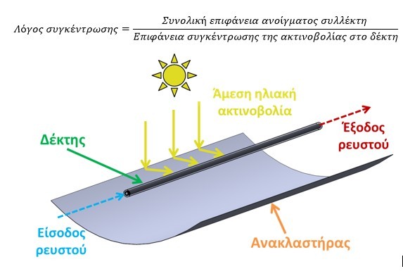 Η πιο ώριμη και διαδομένη τεχνολογικά μορφή συγκεντρωτικού θερμικού συστήματος είναι ο επιμήκης παραβολικός ηλιακός συλλέκτης (parabolic trough collector – PTC) ο οποίος δίνεται στην εικόνα 1. Ο συλλέκτης αυτός αποτελείται από το επίμηκες παραβολικό κάτοπτρο και τον δέκτη. Το κάτοπτρο αποτελείται από μια ανακλαστική επιφάνεια μικρού πάχους η οποία έχει ανακλαστικότητα της τάξης του 93%. Ο δέκτης του συλλέκτη είναι συνήθως ένας σωλήνας κενού, έτσι ώστε να παρουσιάζει υψηλή θερμική απόδοση.