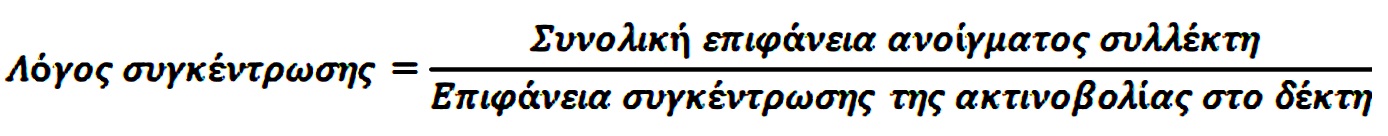 Η παράμετρος αυτή δείχνει πόσες φορές είναι μεγαλύτερο το άνοιγμα του συλλέκτη σε σχέση με την επιφάνεια απορρόφησης της ηλιακής ακτινοβολίας στο δέκτη. Σε έναn παραβολικό συλλέκτη, ο λόγος συγκέντρωσης μπορεί να είναι από 10 έως 50. Ο μεγαλύτερος λόγος συγκέντρωσης οδηγεί σε δυνατότητα λειτουργίας σε υψηλότερες θερμοκρασίες με αυξημένη θερμική απόδοση.