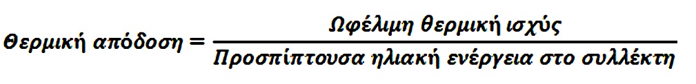 Η θερμική απόδοση του ηλιακού συλλέκτη είναι η σημαντικότερη παράμετρος για την αξιολόγηση του. Ο ορισμός της θερμικής απόδοσης είναι ο εξής:
