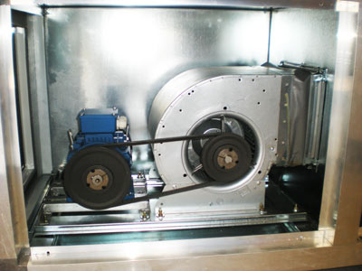 Το τμήμα ανεμιστήρων ( Fan Section) μπορεί να καλύψει όλες τις απαιτήσεις με παροχή έως 100.000 m3/h και στατική πίεση έως 1.200 pa. Πρόκειται για φυγοκεντρικούς ανεμιστήρες διπλής αναρρόφησης με εμπροσθοκλινή ή οπισθοκλινή πτερύγια. Η μετάδοση της κίνησης γίνεται μέσω τροχαλιών και ιμάντων με τα οποία μπορεί να ρυθμιστεί με απόλυτη ακρίβεια η σχέση μετάδοσης. Επίσης ανεμιστήρες μονής αναρρόφησης τύπου Fan Plug με απευθείας κίνηση. Όλοι οι ανεμιστήρες μπορούν να συνδυαστούν με ρυθμιστή στροφών ( Inverter).