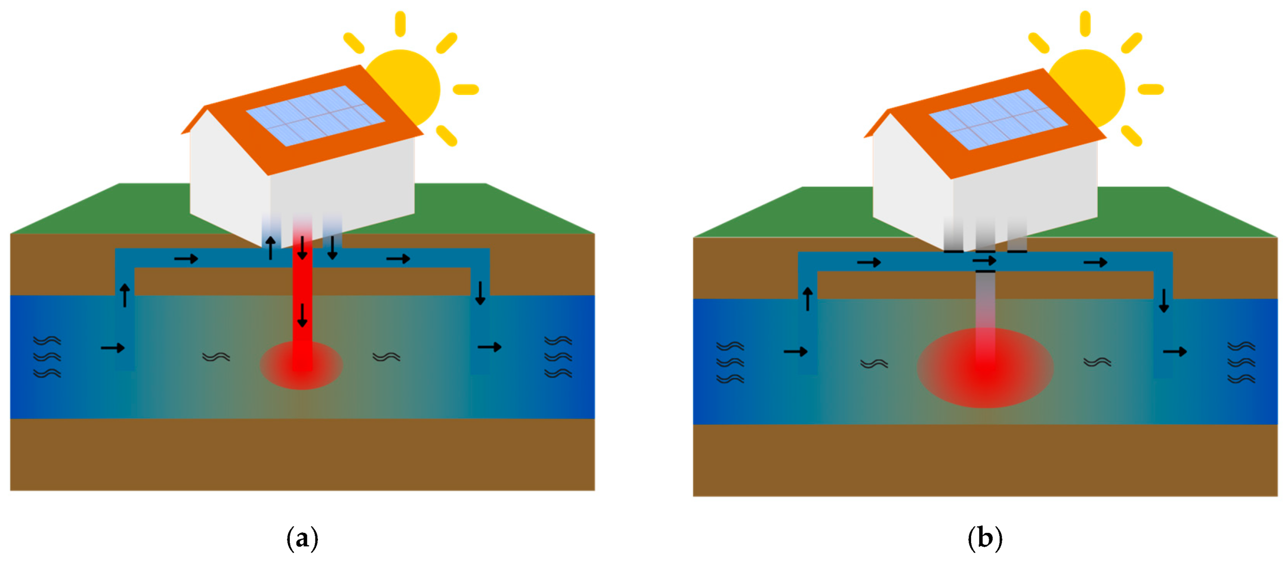 Χρησιμοποιείται ένα κλειστό σύστημα, όπου κυκλοφορεί νερό ή άλλο υγρό, και σπανίως ανοιχτό σύστημα όπου κυκλοφορεί το υπόγειο νερό.